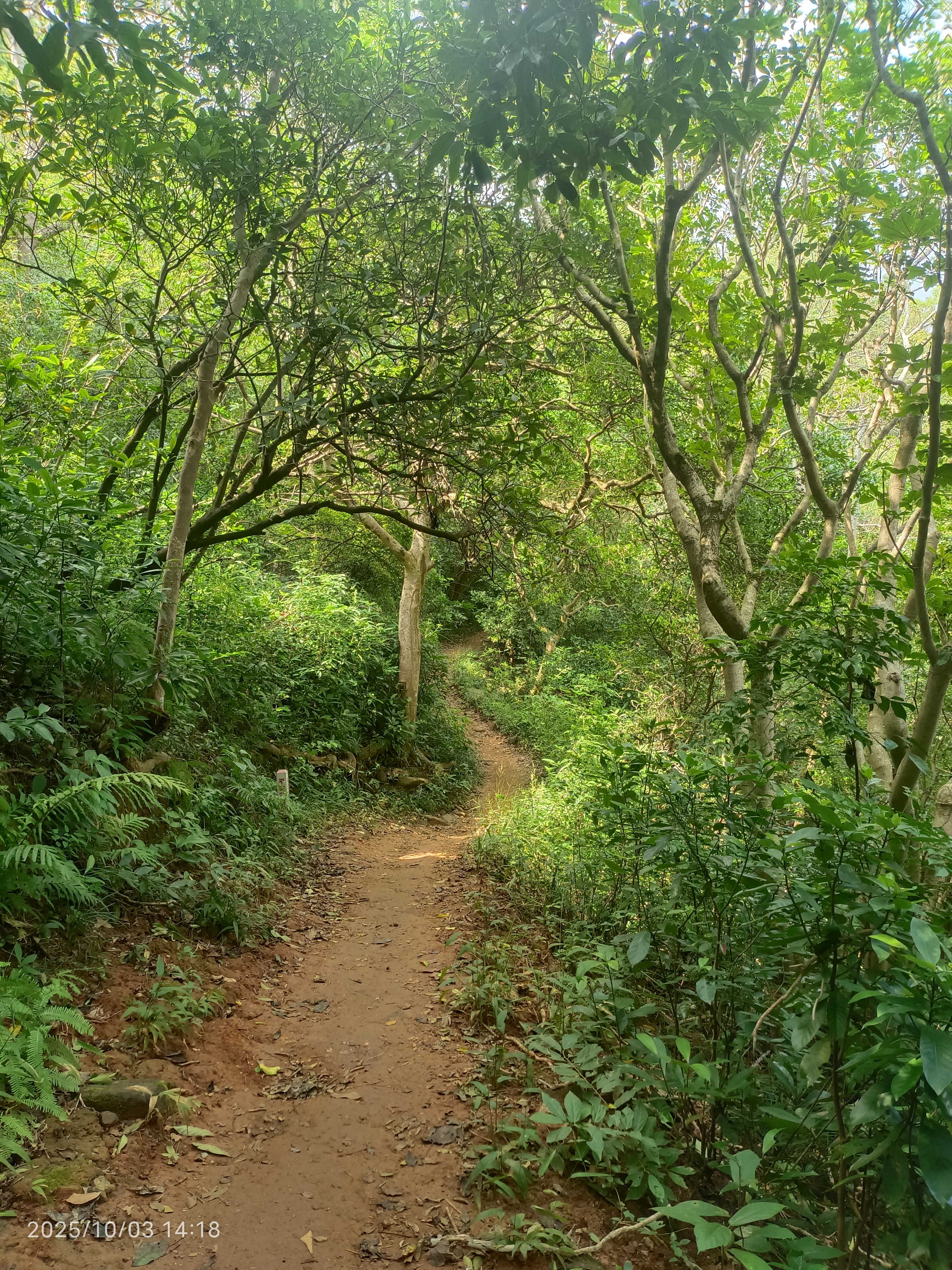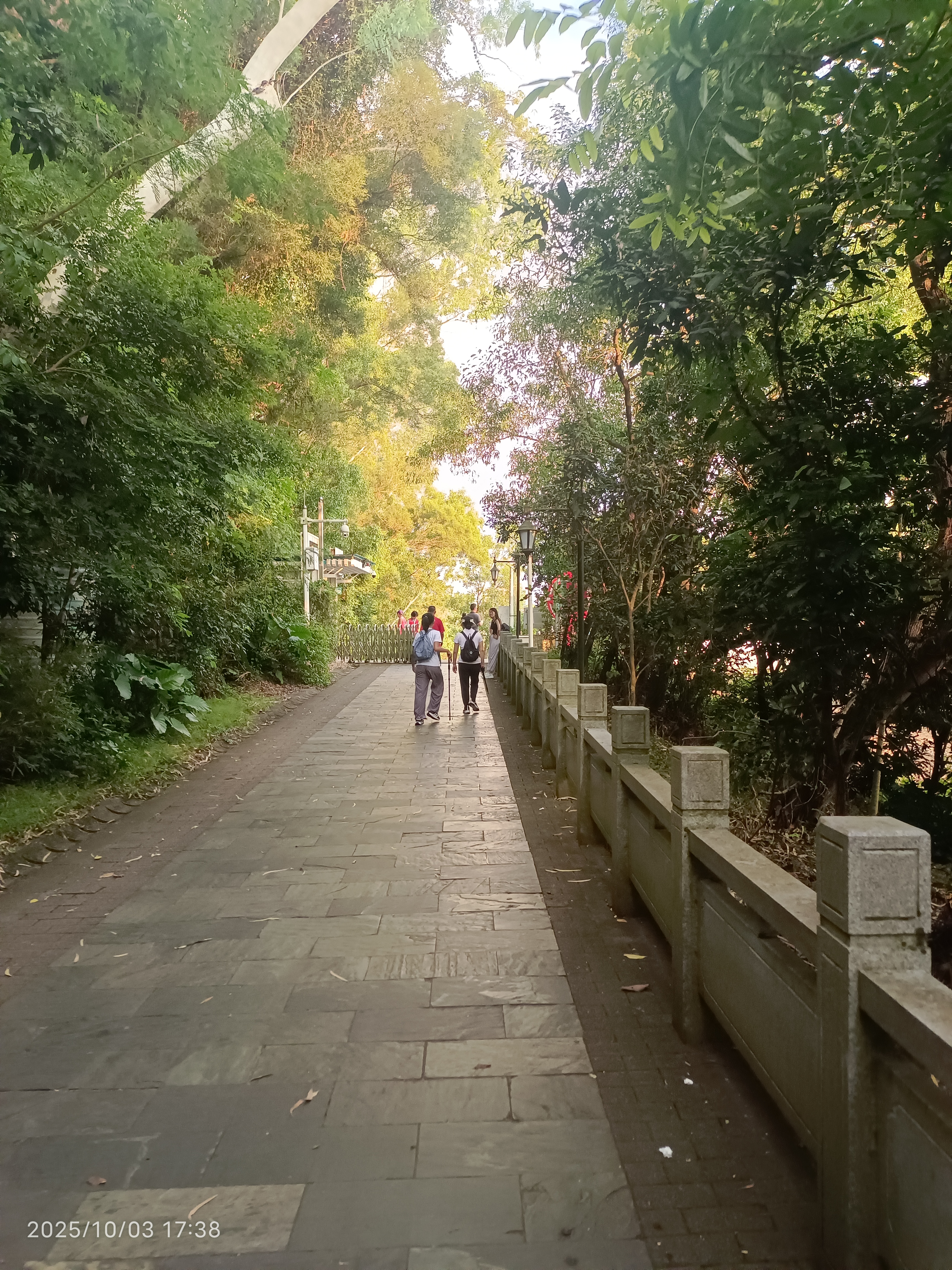 整体上讲,这一段徒步路线还是蛮不错的,青松步道那边是林荫小路,非常有山林中闯荡的感觉,但到梅林水库下山的那段路程,全部是大砖块铺就的“康庄大道”,和我向往的泥泞小路,大相径庭,全程无聊枯燥而且劳累,下山一路颠簸。